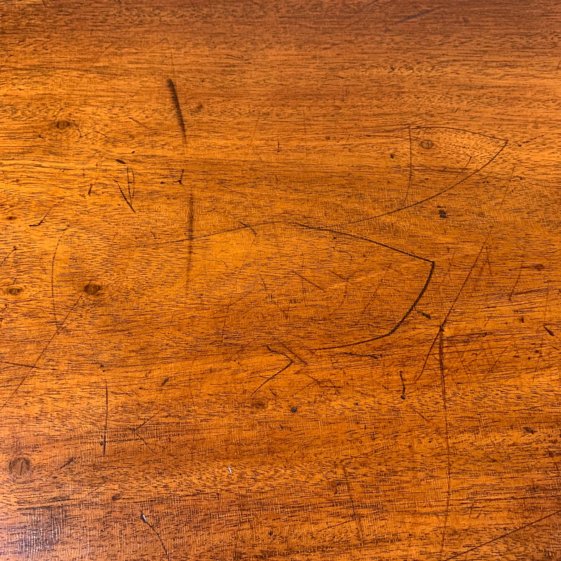 CONDITION: The desk is in very good condition with wear consistent with age and use, including surface scratches and abrasions. Some minor repairs have been made (e.g. reattaching some of the drawer pulls).
